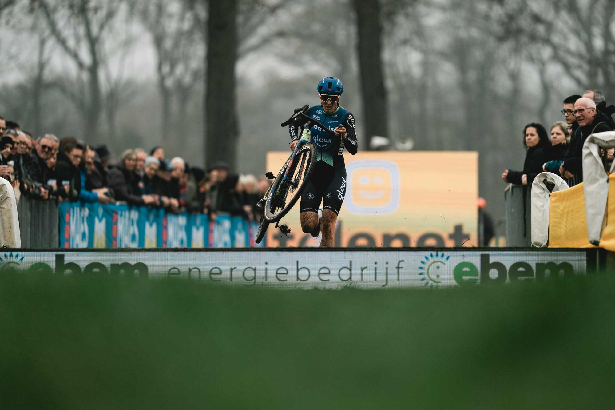Aniek van Alphen fought consistently during the first half of the race to stay in the leaders’ slipstream. At the start of the third lap, she too made it to the front. Van Alphen was the only rider to jump the planks, allowing her to take control. It didn’t last long, though, as Brand felt her moment had come at the end of the third lap.