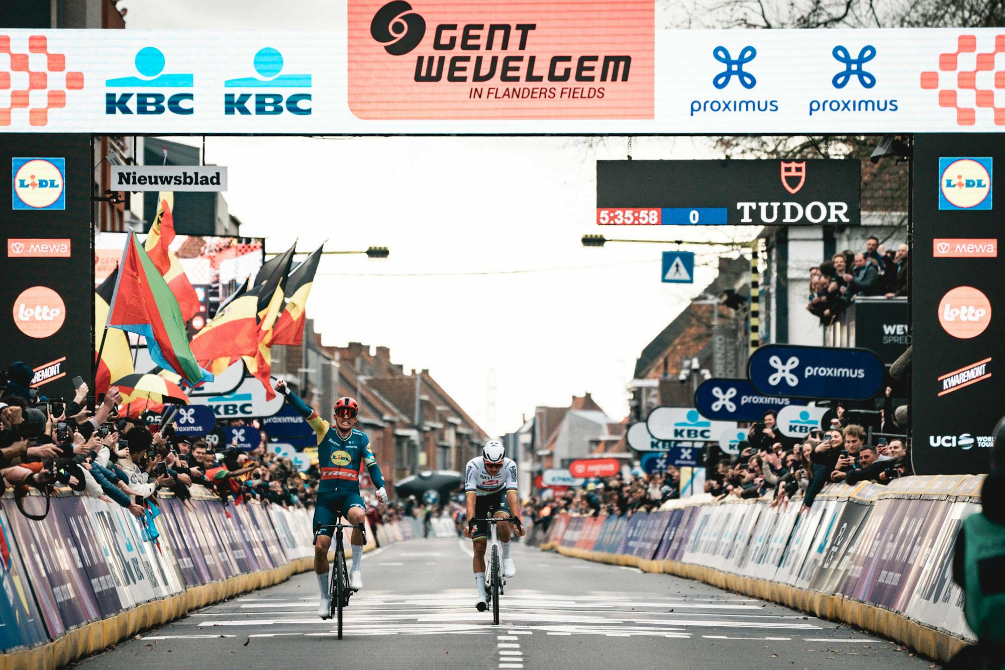 Mads Pedersen has won Gent-Wevelgem for the second time. After a race that saw the initial sorting of the riders take place in De Moeren, after which there was never really any let-up, Pedersen and Van der Poel rode together to the finish line. The world champion had to concede defeat to the Dane, who scored his second Gent-Wevelgem victory.