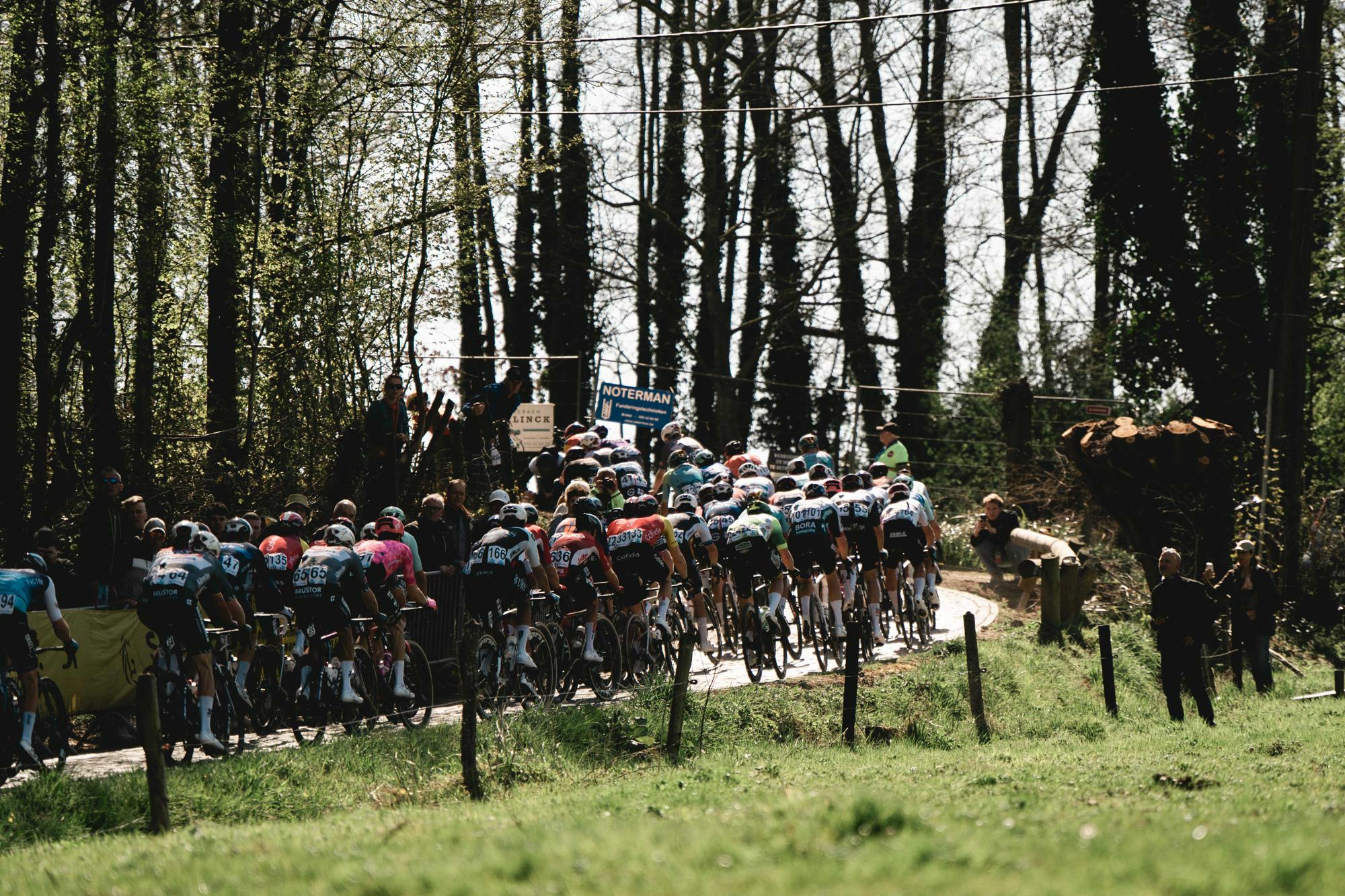Just before the Eikenberg, Livyns (Lotto) and O’Brien (Team Jayco Alula) launched a counterattack from the peloton. At the same time, Philipsen (Alpecin – Deceuninck) struggled to keep up with the pace. As the leaders passed through the centre of Oudenaarde, 35 kilometres from the finish, Pedersen made another attempt to break away but was unable to do so. By that point, the front group had a 40-second advantage over the peloton.