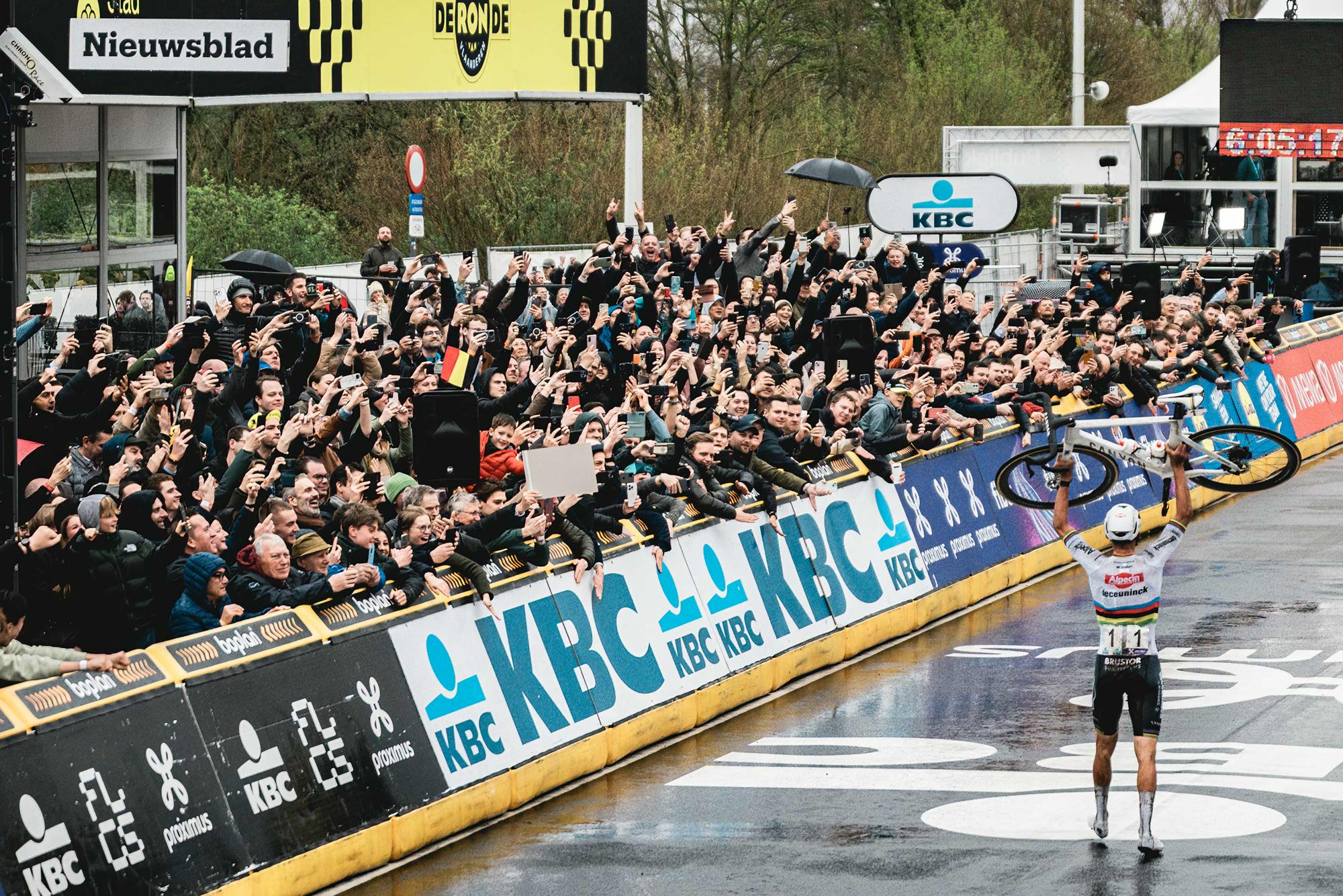 With a third win, Mathieu van der Poel has joined an exceptional list of champions. From the Koppenberg, the Dutchman rode solo to victory in Oudenaarde. He made it ahead of Mozzato and Politt.