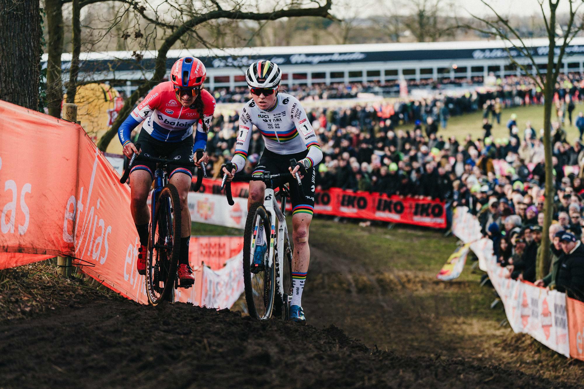 At the start of the race, Van Empel (Team Visma - Lease a Bike) wasted no time in applying pressure to the rest of the field. The world champion set the pace and only Brand (Baloise Trek Lions) and finally Pieterse (Fenix – Deceuninck) were still hanging onto her wheel at the end of the opening lap. Going flat out, that was not yet Van Empel’s game. Vas (Team SD Worx) and Alvarado (Alpecin - Deceuninck) were able to join the leaders on lap two, but then once again Van Empel carefully began to apply more pressure.