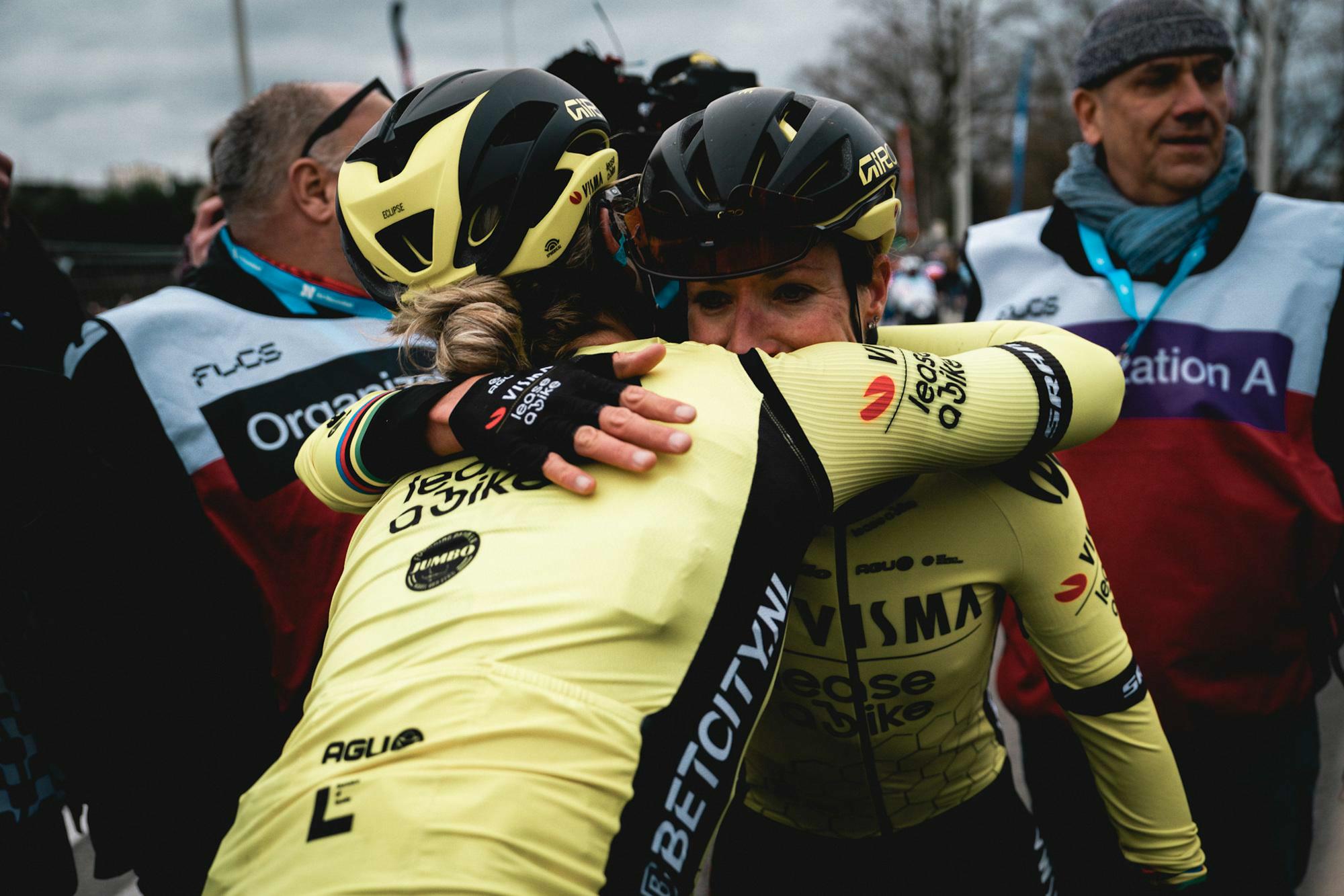 Marianne Vos (Visma I Lease A Bike) sprinted to victory on her debut in Omloop het Nieuwsblad. World champion Lotte Kopecky was second and Italian champion Longo Borghini completed the top 3.