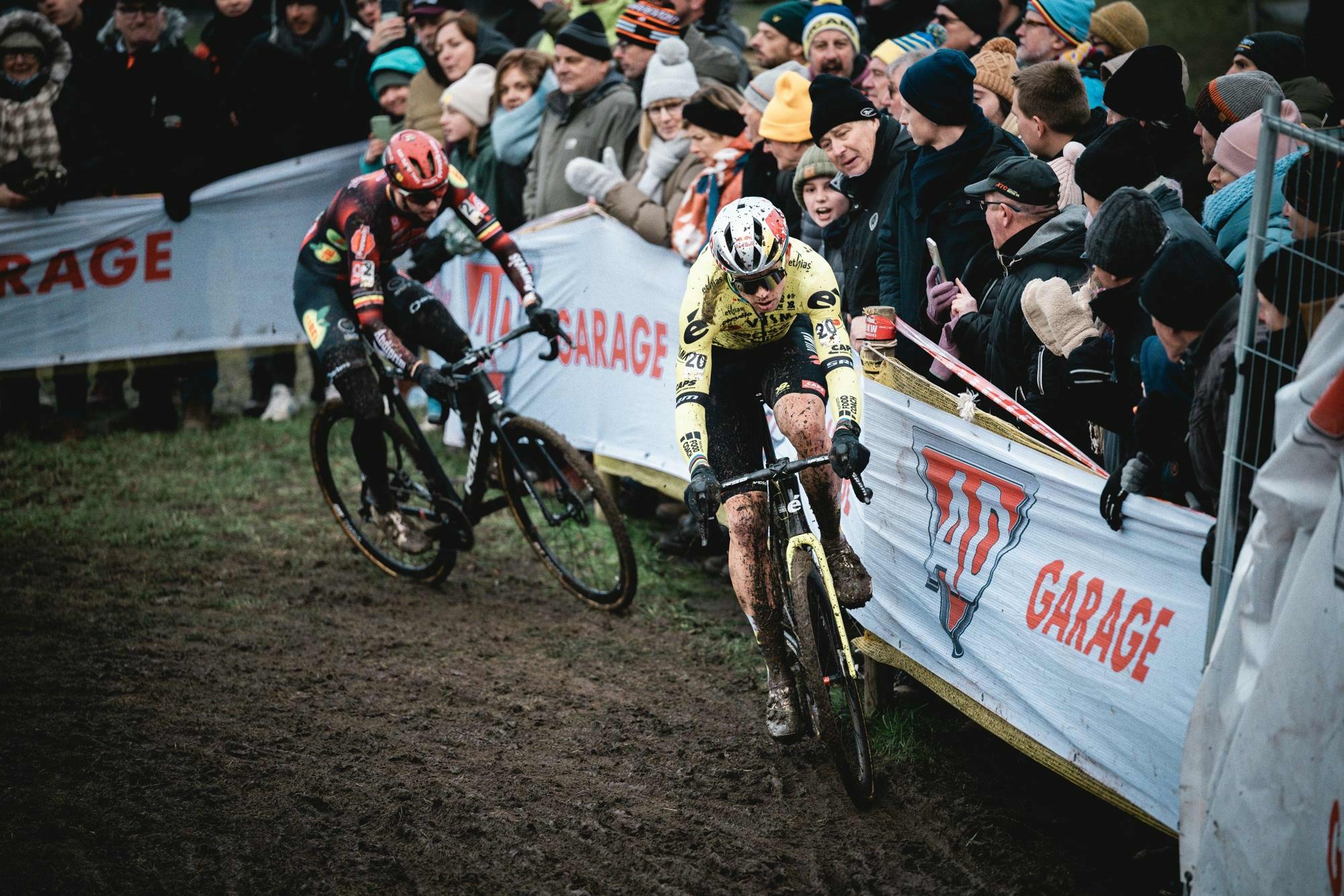Van Aert pressed harder in the penultimate lap. Iserbyt saw the yellow jersey pull away bit by bit but didn’t completely crack. The gap between the two was just one second going into the final lap.