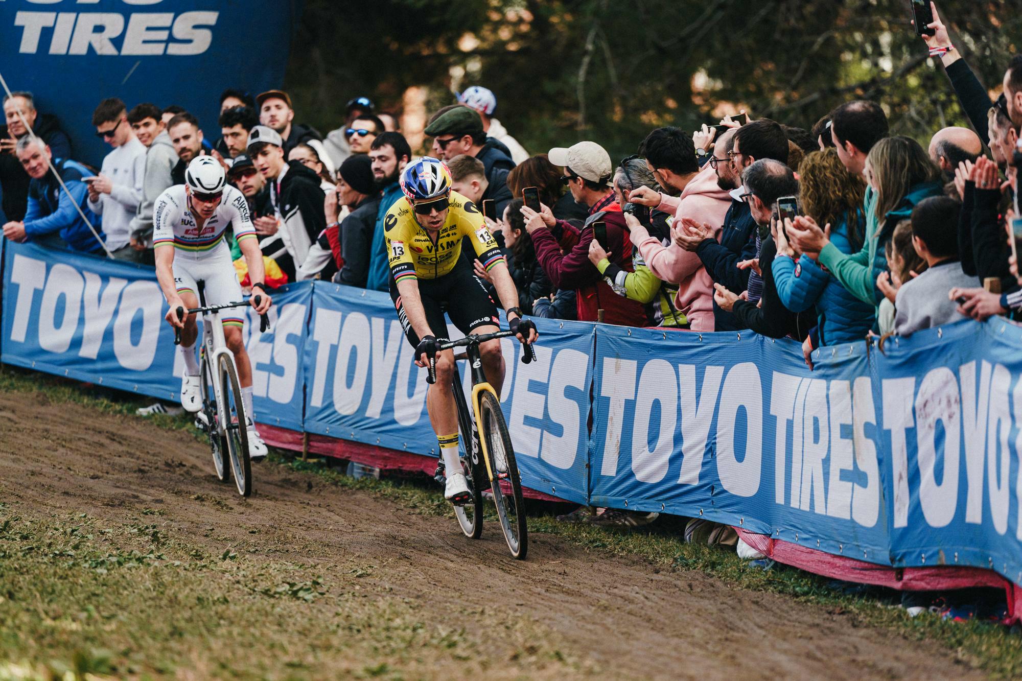 Pidcock secured a slight lead entering the sixth round, and an attack from Mathieu Van der Poel saw Wout van Aert responding, staying in the mix. Van der Poel switched to running shoes, and the quartet entered the seventh round together. In the background, Thibau Nys made a strong effort, almost bridging the gap.