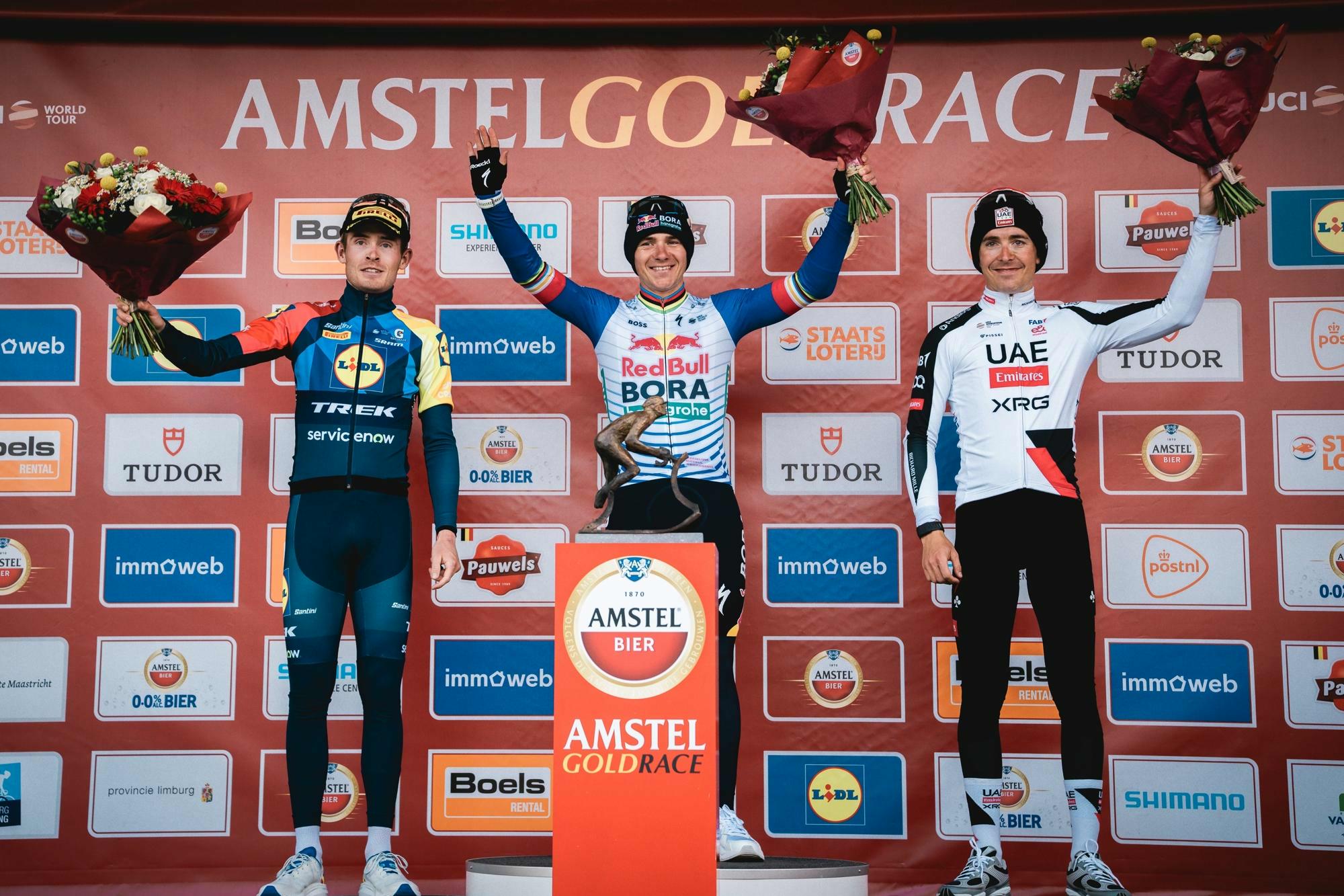 Remco Evenepoel a remporté la 60e édition de l’Amstel Gold Race. Le Belge s’est imposé au sprint à deux face au tenant du titre Mattias Skjelmose. Benoît Cosnefroy a remporté le sprint pour la troisième place.