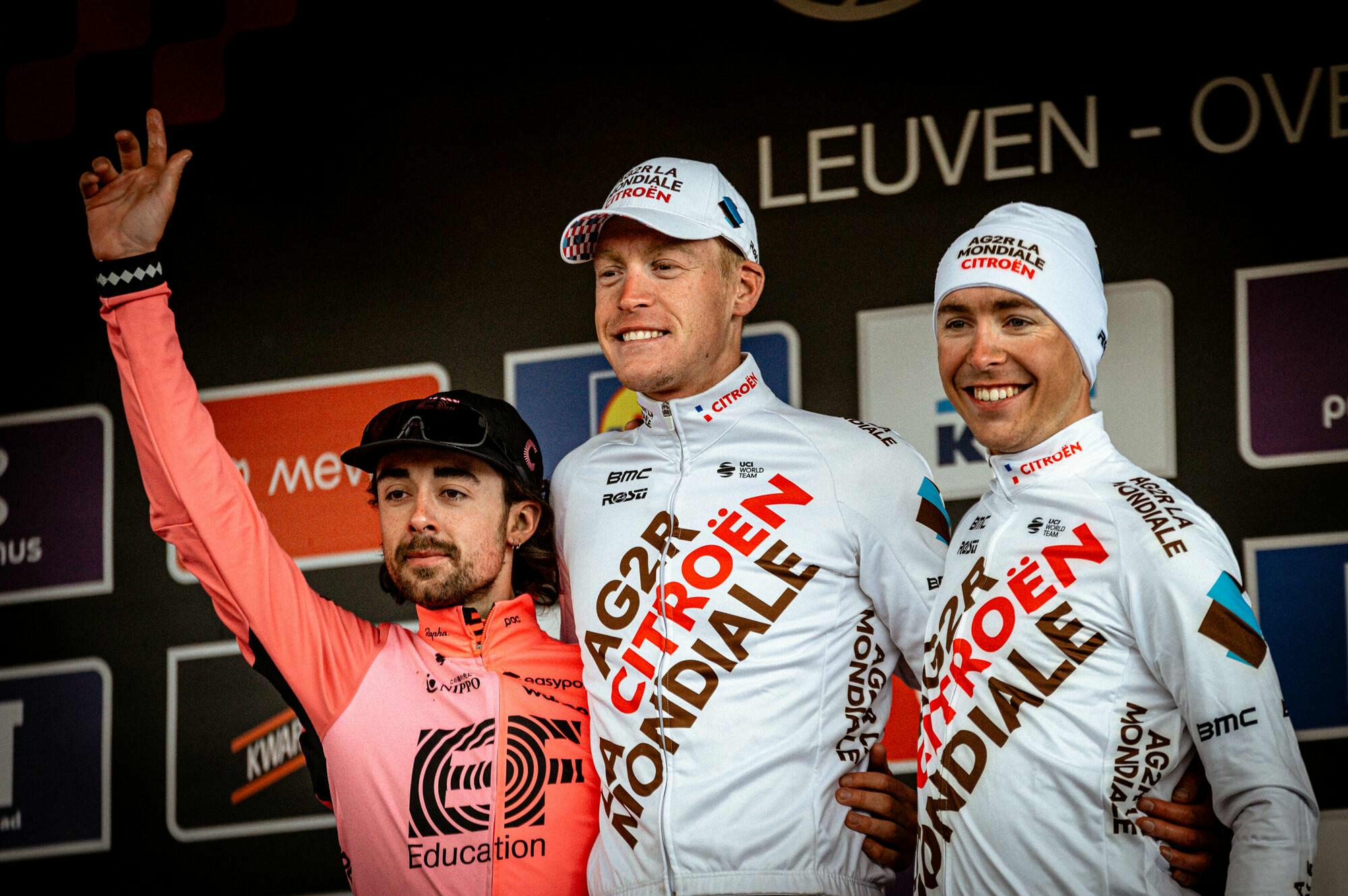 À l’avant, il s’agissait d’éviter à tout prix le retour du peloton. Healy accéléra donc une nouvelle fois dans la Hertstraat. Godon parvint à suivre l’Irlandais, mais pas Cavagna. Dans les cinq derniers kilomètres, le duo comptait encore une avance de trente secondes et put tout doucement se préparer à un sprint à deux sur la Brusselsesteenweg. À 200 mètres de l’arrivée, c’est le Français qui lança les hostilités. Healy fut incapable de revenir et termine deuxième. La fête fut totale pour AG2R Citroën Team grâce à la troisième place de Cosnefroy (comme en 2022).